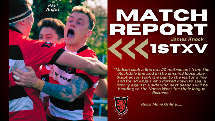 With 50 minutes showing on the clock, 10 of which were unbelievably injury stoppages, Malton took a line out 20 metres out from the Rochdale line and in the ensuing loose play Stephenson took the ball to the visitor’s line and found Angus who dotted down to seal a victory against a side who next season will be heading to the North West for their league fixtures.