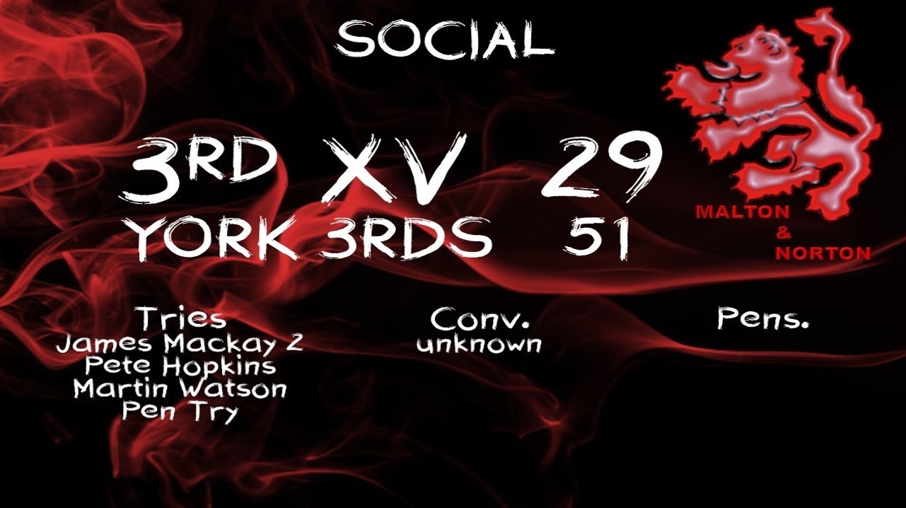 On 75 minutes Hobbs stormed over for Malton's 3rd try not converted which left 5 minutes to find a 4th bonus point try. It was not to be and left the coaches and players reflecting on a continuation of last week's errors at Hartlepool and lessons not learned with regard to the basics of rugby; passing,catching, and tackling.